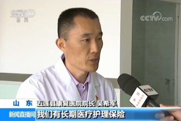 五蓮縣康復醫院院長 吳希軍:老人在住院期間我們有長期護理保險,個人支付每天21塊錢,其余的費用由長期護理保險支付。