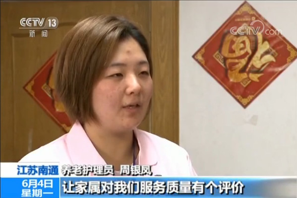 養老護理員 周銀鳳:服務過程中我們會使用一個照護的APP,APP會在服務過程中對我們的服務質量有一個監管,讓家屬對我們的服務質量有個評價。